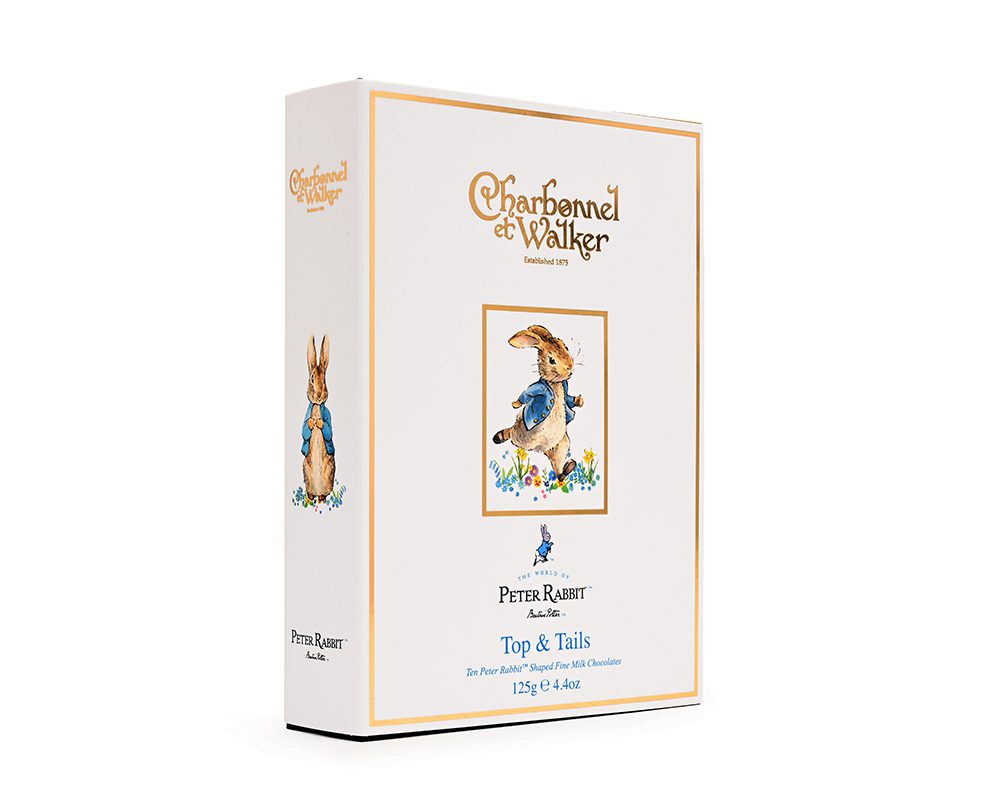 A joyful gift! This delightful gift box is decorated with classic Peter Rabbit illustrations and filled with eight scrumptious Peter Rabbit shaped chocolates. Open the gorgeous gift box to reveal top to tail solid Milk Chocolate Peter Rabbit novelties.