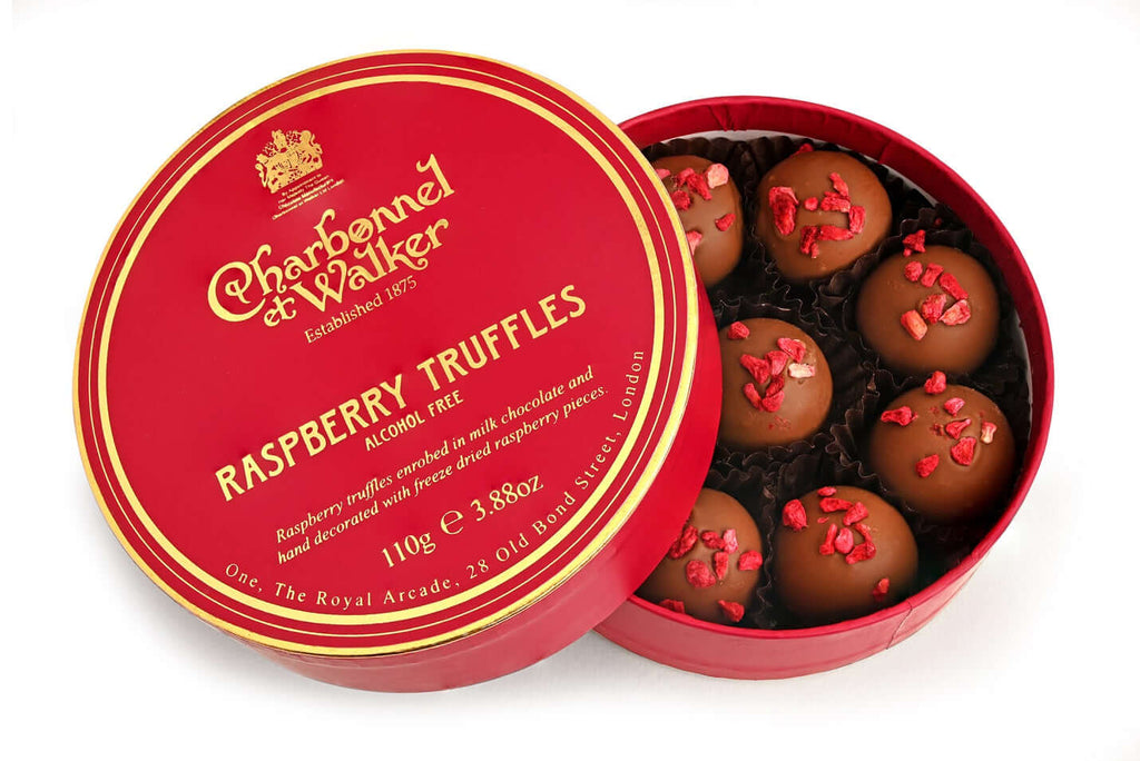 Exquisite Raspberry Truffles! Decadent Milk Chocolate Truffles with a Hazelnut and Almond centre, natural vanilla and decorated with freeze dried raspberries. Wonderful!